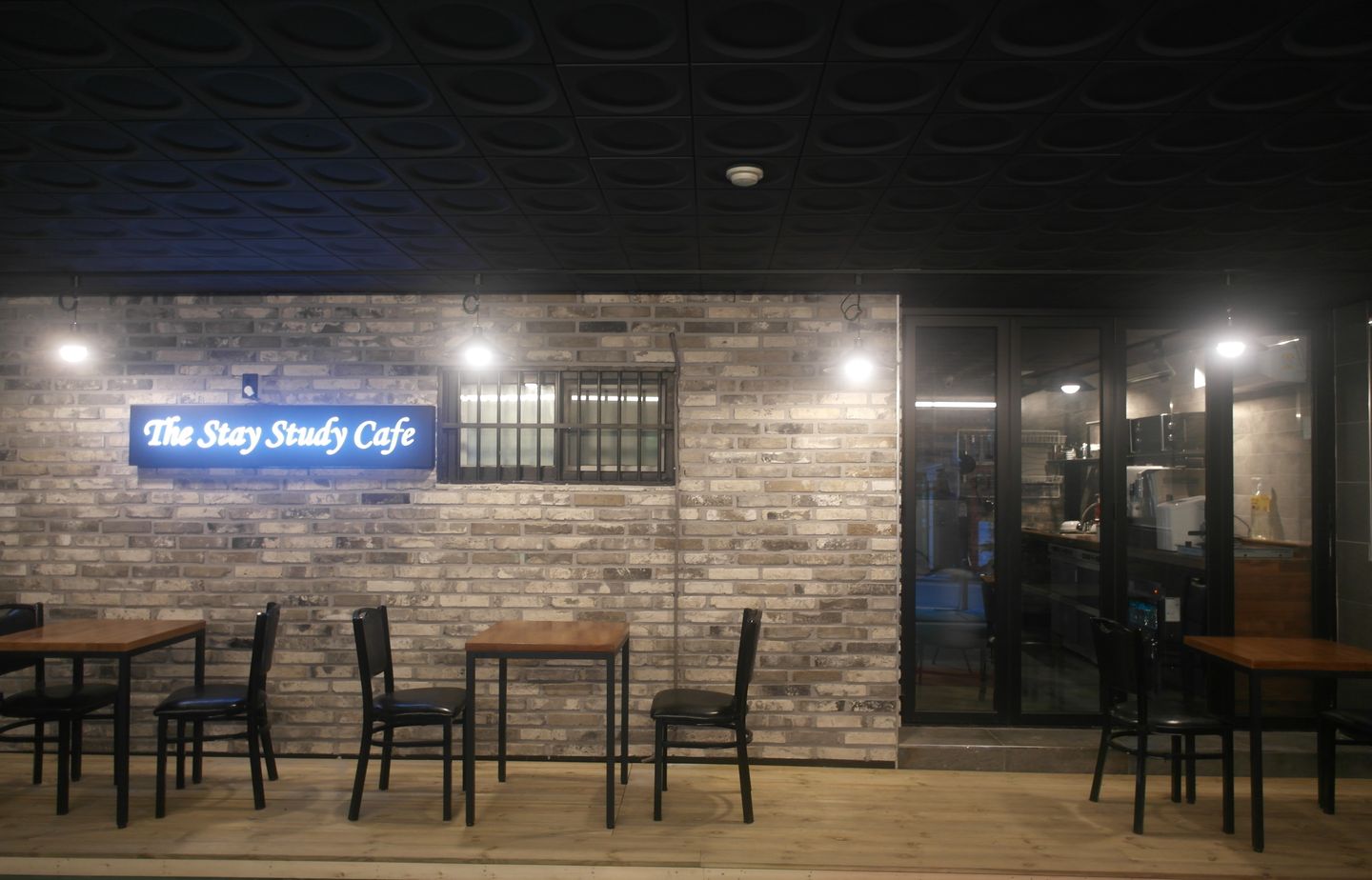 1층 라운지 및 스터디카페 : 카페테리아, OA실(대형 복합기 비치), 스터디카페, 독서실, 그룹 스터디룸